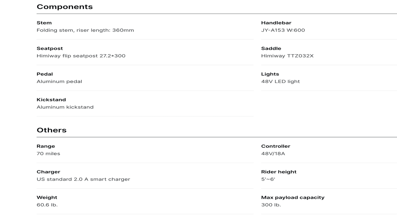 With a removable LG21700 Samsung/LG battery, the Himiway bike offers an impressive 70-mile range, allowing you to enjoy extended rides without worry.