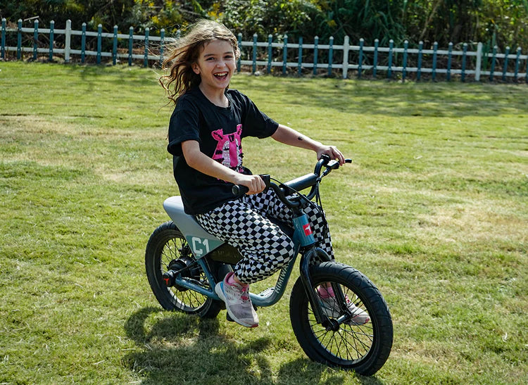 The child's safety is paramount! The C1 ebike is designed with your child's safety in mind. It has a reliable and effective braking system that combines hydraulic brakes and electronic brakes for double protection. The C1 ebike has a thumb throttle that prevents accidental starting, and an aircraft-grade aluminum alloy frame that is strong and light. The C1 ebike has a rounded design that is smooth and elegant. It has three-speed modes for your kids to choose from. Even if your child wants to perform stunts, the C1 ebike has you covered. The C1 ebike is the safest and coolest e-bike for your child.